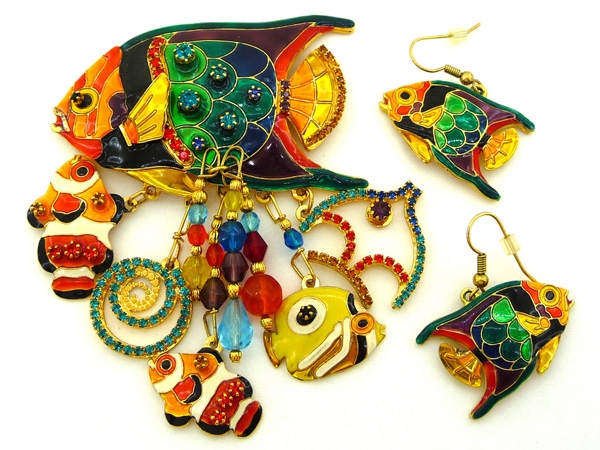 Lunch at the Ritz. Комплект: брошь (кулон) и серьги "Тропические рыбы". США.