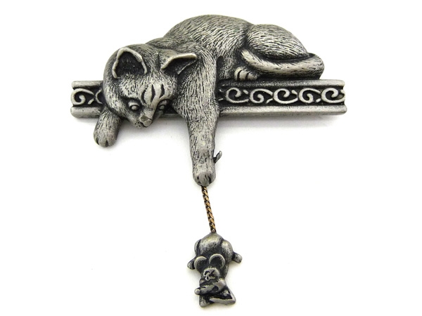 Jonette Jewelry co (JJ). Брошь "Кот и мышь". 90-е года 20 века.