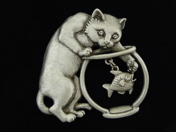 Jonette Jewelry co (JJ). Брошь "Кот с клубком". 90-е года 20 века.