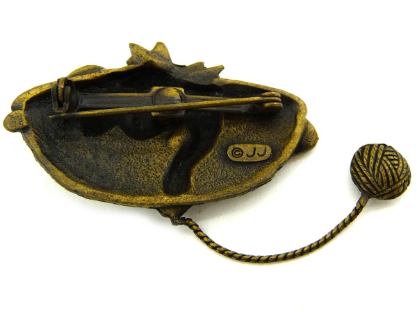 Jonette Jewelry co (JJ). Брошь "Кот с клубком". 90-е года 20 века.