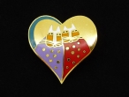Брошь изготовлена из бижутерного сплава цвета золота с 14К золотым покрытием. Техника работы по эмали «клуазоне». Маркирована. Имеется малозаметная царапина, без схода эмали. В остальном - хорошее состояние. Размер: 3,2 см на 3 см.
