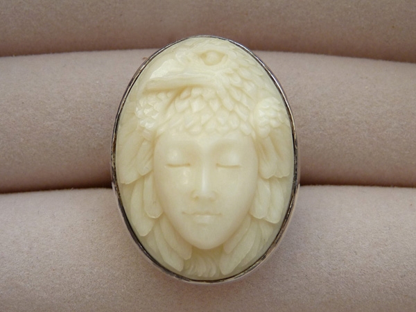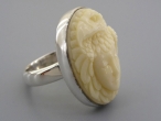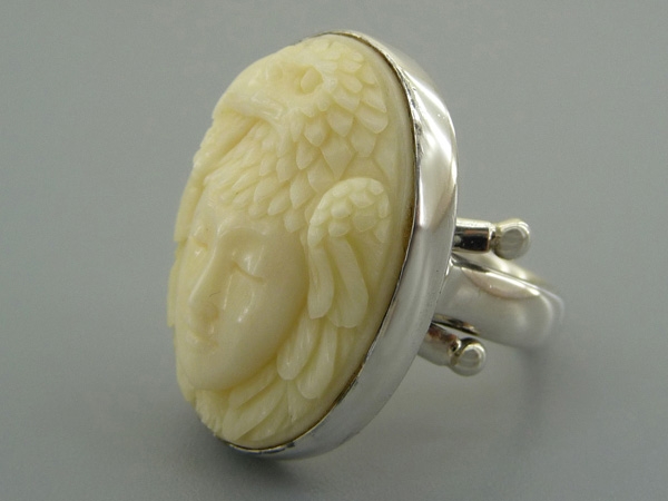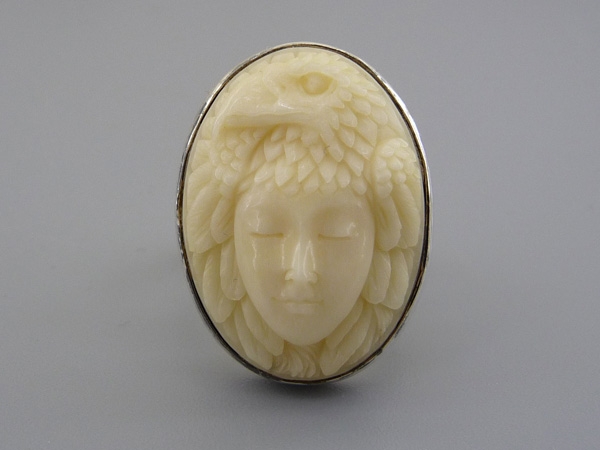 SAJEN. КОЛЬЦО ИЗ КОЛЛЕКЦИИ "GODDESS". СЕРЕБРО. КОСТЬ. ПОЛУДРАГОЦЕННЫЕ КАМНИ. 90-Е ГОДЫ 20 ВЕКА.