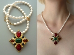 JAY STRONGWATER. КУЛОН "МАЛЬТИЙСКИЙ КРЕСТ" НА БУСАХ ИЗ ЖЕМЧУГА.