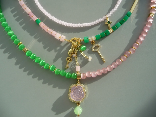 Колье "Ключи" из коллекции "Нежное равновесие". Жадеит.