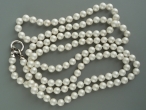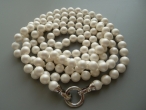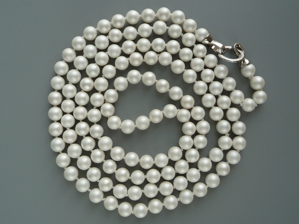 Эти бусы - сама элегантность! Бусины из ракушки с матовым покрытием под жемчуг Майорка нанизаны на шелковую нить через узелок. Длина в 123 сантиметра позволяет носить украшение как в одну нить, так и в несколько оборотов. Конструкция замка даёт возможность соединить эту нить с нитью "Бусы в стиле KJL из матового жемчуга и стекла", что открывает путь для вариативности ношения.