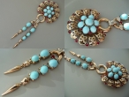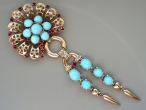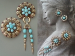 СЕРЕБРЯНАЯ БРОШЬ С БИРЮЗОВЫМИ КАБОШОНАМИ ОТ TRIFARI. STERLING. 40-е годы 20 века.
