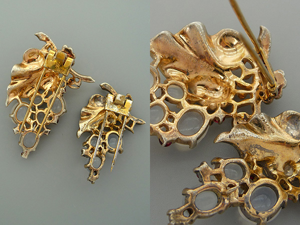 Зажимы для ткани или меха / Dress Clips "Виноград" от Trifari. Sterling. Серебро.