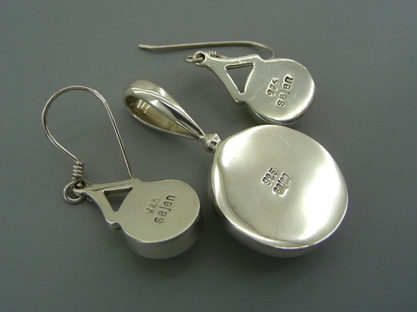 SAJEN. КОМПЛЕКТ. СЕРЕБРО. ПЕРЛАМУТР. ПОЛУДРАГОЦЕННЫЕ КАМНИ. 90-Е ГОДЫ 20 ВЕКА.