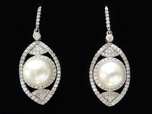 Роскошные серьги выполнены из серебра с позолотой 18 карат и декорированы россыпью австрийских кристаллов. Центральным акцентом является жемчуг Эдисона премиум-класса белого цвета отличного блеска круглой формы. Размер жемчуга около 10 мм. Маркировано.